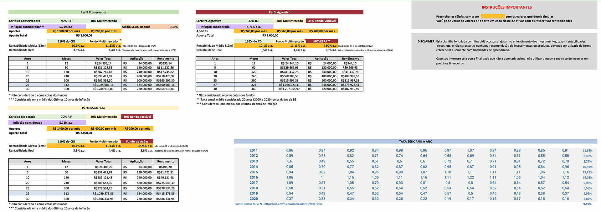Planilha para vocÊ simular quando irá conseguir chegar ao seu primeiro milhão de reais